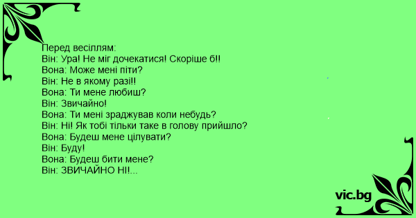 Він: Ні! Як тобі тільки таке в голову прийшло?