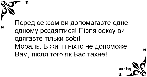 Перед сексом ви допомагаєте одне одному роздягтися! Після сексу ви одягаєте тільки собі!