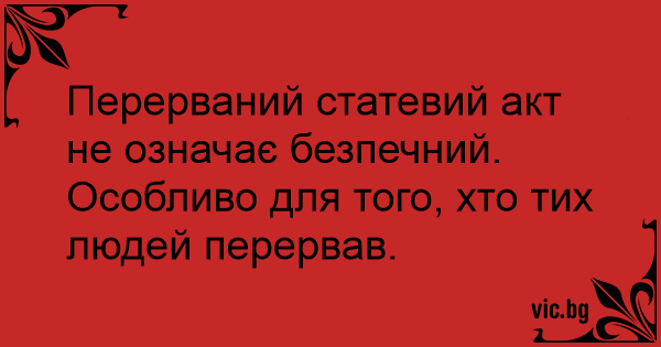 Перерваний статевий акт не означає безпечний. Особливо для того, хто тих людей перервав.