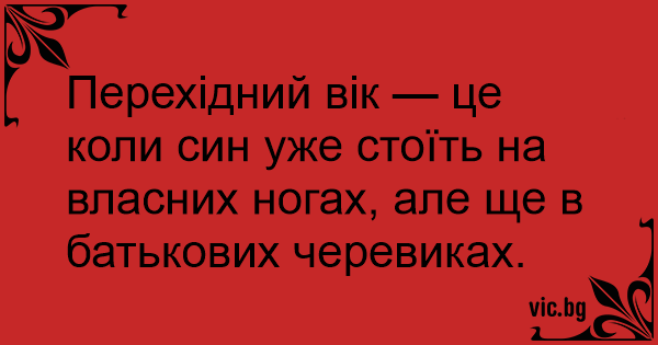 Перехідний вік — це коли син уже стоїть на власних ногах, але ще в батькових черевиках.