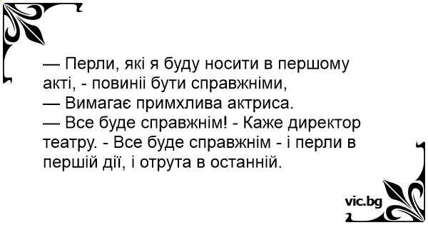 — Все буде справжнім! - Каже директор театру. - Все буде справжнім - і перли в першій дії, і отрута в останній.