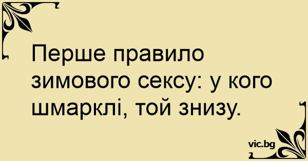 Перше правило зимового cекcу: у кого шмарклі, той знизу.