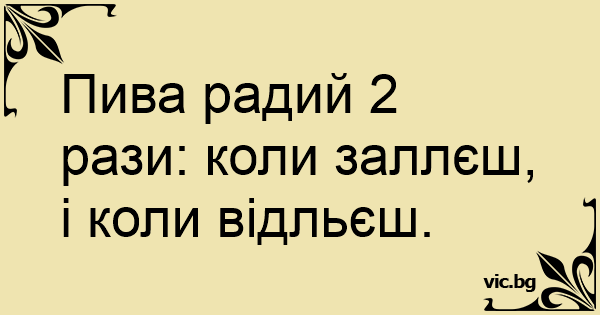 Пива радий 2 рази: коли заллєш, і коли відльєш.