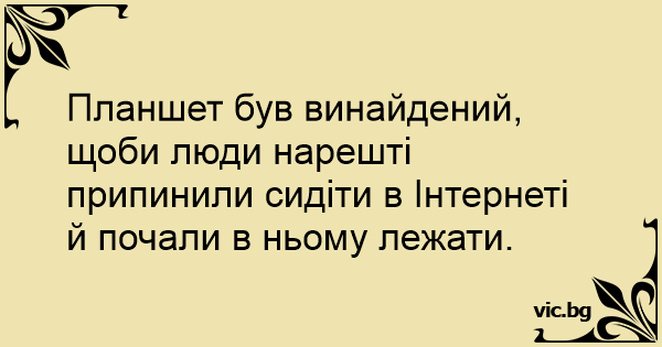 Планшет був винайдений, щоби люди нарешті припинили сидіти в Інтернеті й почали в ньому лежати.