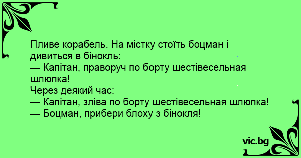 — Капітан, праворуч по борту шестівесельная шлюпка!