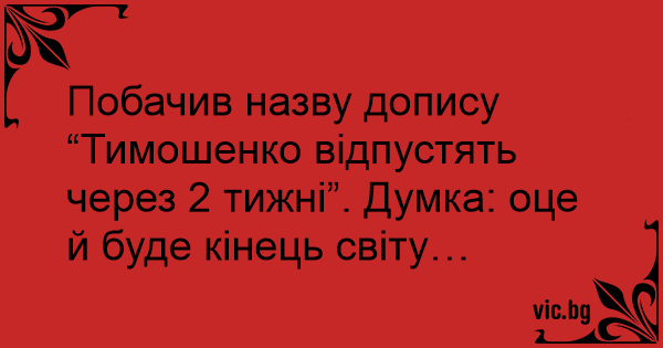 Побачив назву допису “Тимошенко відпустять через 2 тижні”. Думка: оце й буде кінець світу…