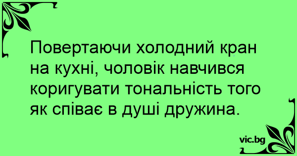 Повертаючи холодний кран на кухні, чоловік навчився коригувати тональність того як співає в душі дружина.