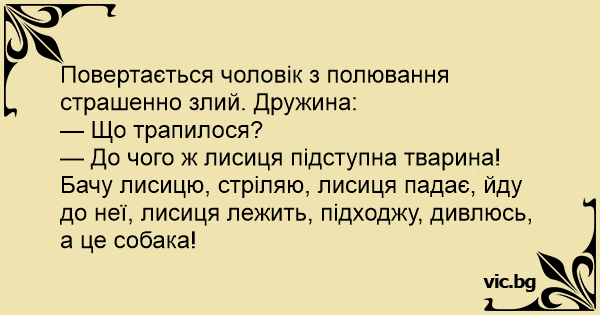Повертається чоловік з полювання страшенно злий. Дружина: