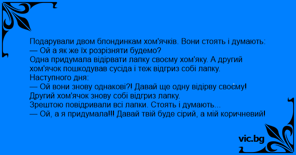 Подарували двом блондинкам хом'ячків. Вони стоять і думають:
