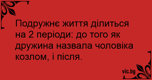 Подружнє життя ділиться на 2 періоди: до того як дружина назвала чоловіка козлом, і після.