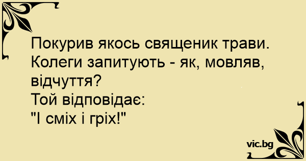 Покурив якось священик трави. Колеги запитують - як, мовляв, відчуття?