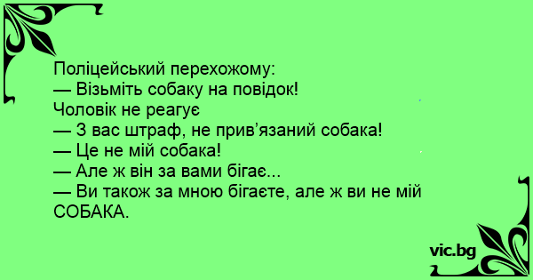— З вас штраф, не прив’язаний собака!