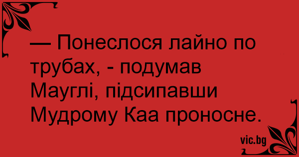 — Понеслося лaйнo по трубах, - подумав Мауглі, підсипавши Мудрому Каа проносне.