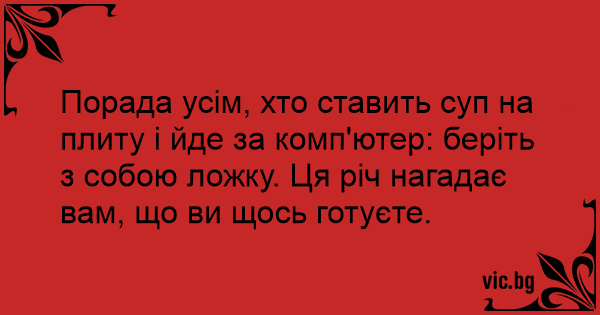 Порада усім, хто ставить суп на плиту і йде за комп'ютер: беріть з собою ложку. Ця річ нагадає вам, що ви щось готуєте.