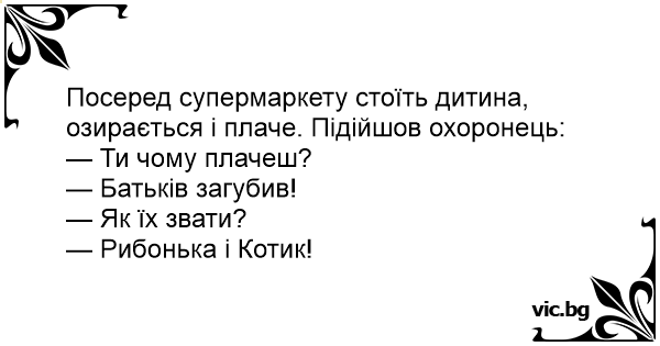 Посеред супермаркету стоїть дитина, озирається і плаче. Підійшов охоронець: