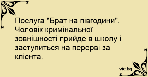 Послуга "Брат на півгодини". Чоловік кримінальної зовнішності прийде в школу і заступиться на перерві за клієнта.
