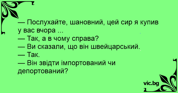 — Послухайте, шановний, цей сир я купив у вас вчора ...