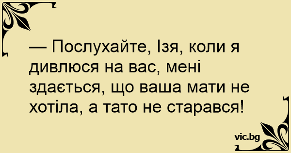 — Послухайте, Ізя, коли я дивлюся на вас, мені здається, що ваша мати не хотіла, а тато не старався!