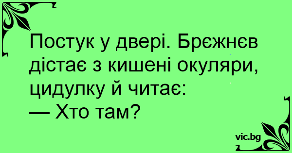 Постук у двері. Брєжнєв дістає з кишені окуляри, цидулку й читає: