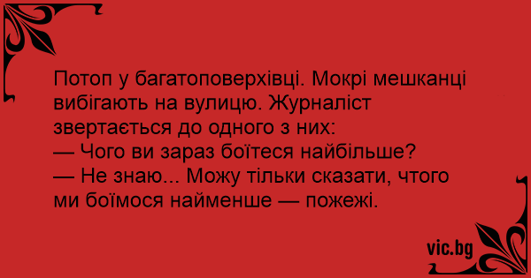 Потоп у багатоповерхівці. Мокрі мешканці вибігають на вулицю. Журналіст звертається до одного з них: