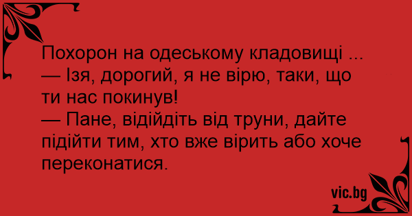 — Ізя, дорогий, я не вірю, таки, що ти нас покинув!
