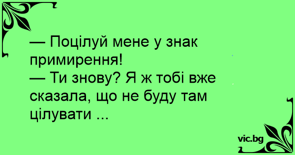 — Ти знову? Я ж тобі вже сказала, що не буду там цілувати ...