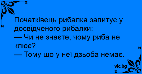 — Чи не знаєте, чому риба не клює?
