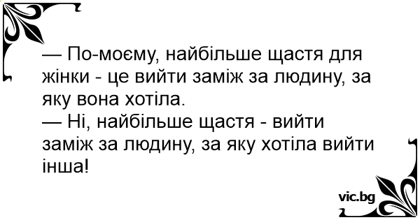 — Ні, найбільше щастя - вийти заміж за людину, за яку хотіла вийти інша!