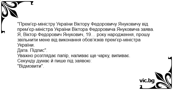"Прем’єр-міністру України Віктору Федоровичу Януковичу від прем’єр-міністра України Віктора Федоровича Януковича заява.