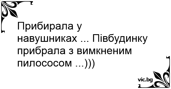 Прибирала у навушниках ... Півбудинку прибрала з вимкненим пилососом ...)))