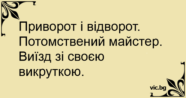Приворот і відворот. Потомствений майстер. Виїзд зі своєю викруткою.