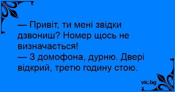 — З домофона, дурню. Двері відкрий, третю годину стою.