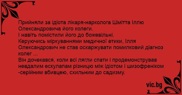 Прийняли за ідіота лікаря-нарколога Шмітта Іллю Олександровича його колеги.