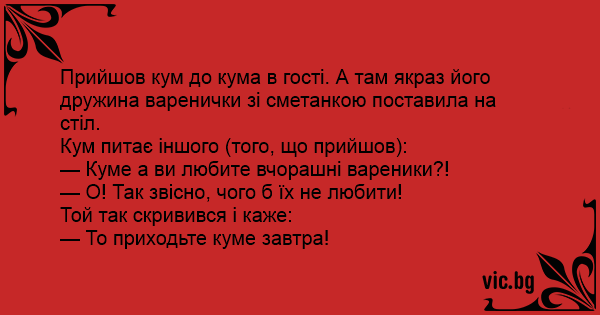 — Куме а ви любите вчорашні вареники?!