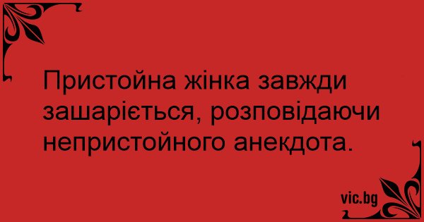Пристойна жінка завжди зашаріється, розповідаючи непристойного анекдота.