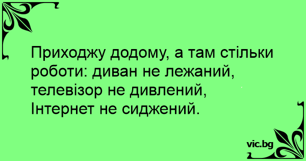 Приходжу додому, а там стільки роботи: диван не лежаний, телевізор не дивлений, Інтернет не сиджений.