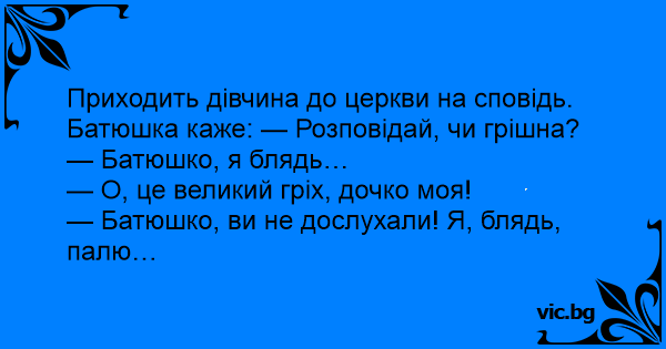 — Батюшко, ви не дослухали! Я, блядь, палю…