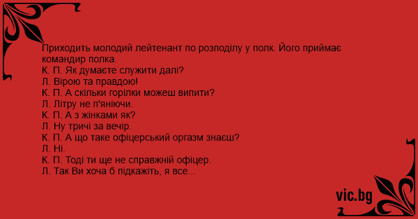 К. П. А що таке офіцерський оргазм знаєш?