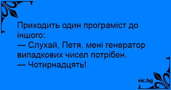— Слухай, Петя, мені генератор випадкових чисел потрібен.