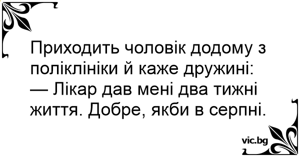 — Лікар дав мені два тижні життя. Добре, якби в серпні.