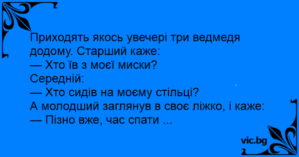 Приходять якось увечері три ведмедя додому. Старший каже: