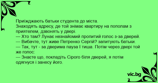 — Хто там? Лунає незнайомий пропитий голос з-за дверей.