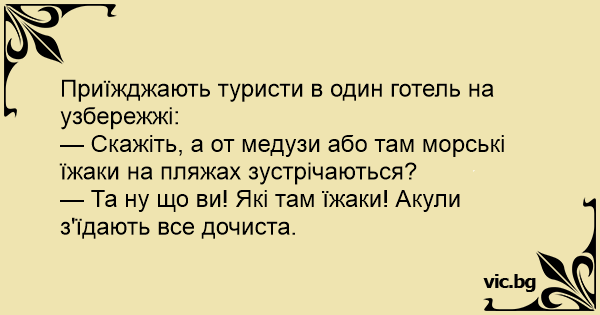 — Та ну що ви! Які там їжаки! Акули з'їдають все дочиста.