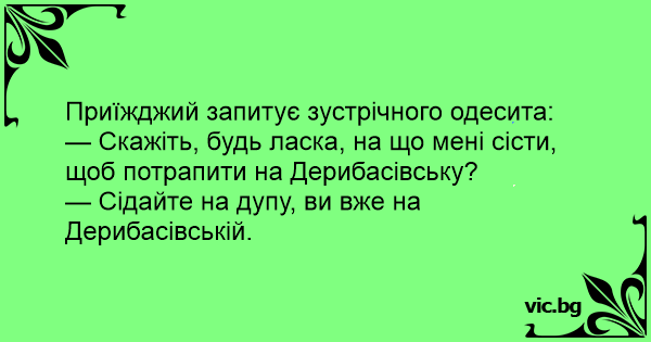 — Сідайте на дупу, ви вже на Дерибасівській.