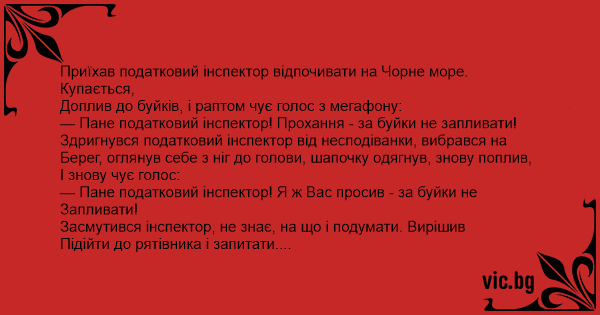 — Пане податковий інспектор! Прохання - за буйки не запливати!