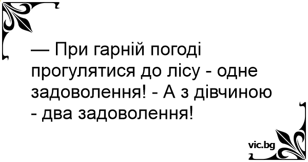 — При гарній погоді прогулятися до лісу - одне задоволення! - А з дівчиною - два задоволення!
