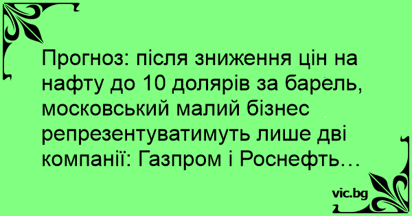 Прогноз: після зниження цін на нафту до 10 долярів за барель, московський малий бізнес репрезентуватимуть лише дві компанії: Газпром і Роснефть…