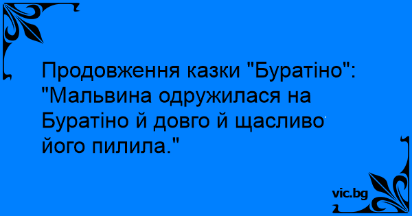 "Мальвина одружилася на Буратіно й довго й щасливо його пилила."