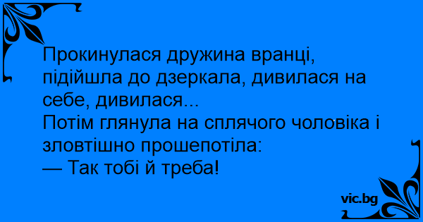 Прокинулася дружина вранці, підійшла до дзеркала, дивилася на себе, дивилася...