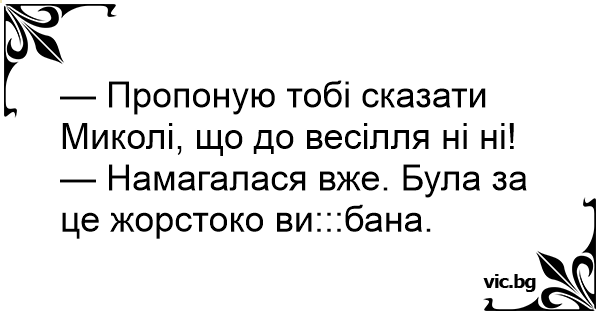 — Пропоную тобі сказати Миколі, що до весілля ні ні!